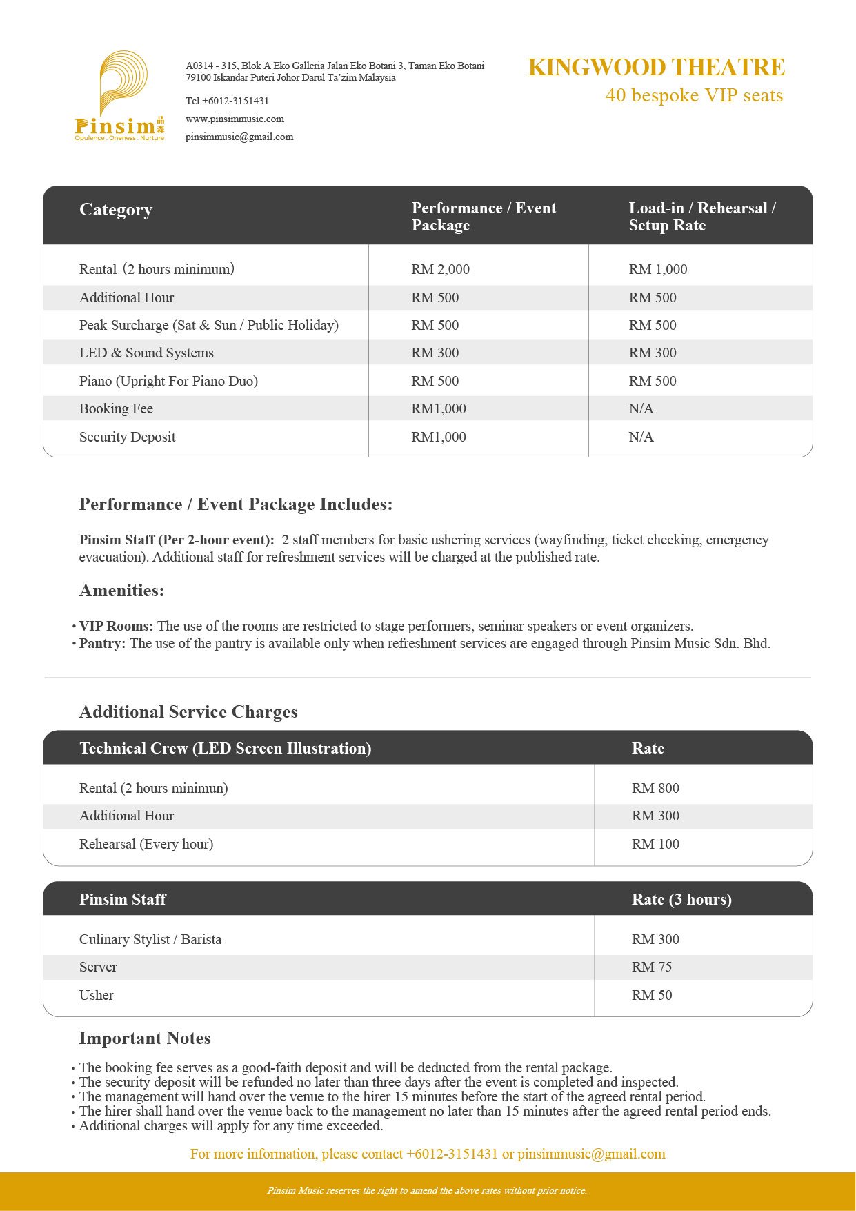 Kindly fill up this booking form and we will get back to you as soon as possible. For more information, you may reach us at +60145031431 or email us at pinsimmusic@gmail.com